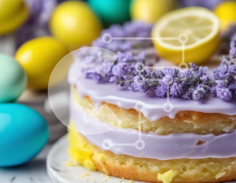 Υπάρχει δυνατότητα προσωποποίησης με δική σας φωτογραφία και προσαρμογής διαστάσεων κατόπιν παραγγελίας. Το συγεκεριμενο puzzle παρουσιαζει Αυτή η εικόνα παρουσιάζει ένα όμορφα διακοσμημένο κέικ με φέτες λεβάντας και λεμονιού, συνοδευόμενο από πασχαλινά αυγά διάσπαρτα γύρω από το τραπέζι. Το κέικ φαίνεται φρεσκοψημένο, με το frosting να δείχνει ότι μπορεί να έχει μπει στο ψυγείο πριν το σερβίρισμα. Ένα μοναδικό p