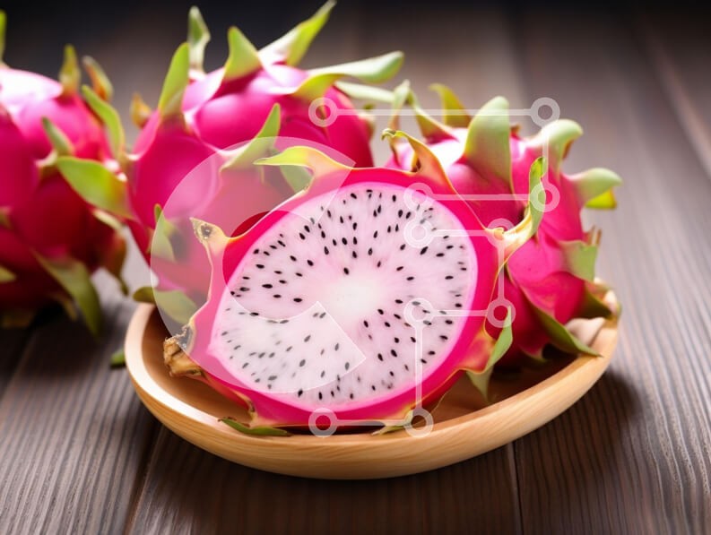 Υπάρχει δυνατότητα προσωποποίησης με δική σας φωτογραφία και προσαρμογής διαστάσεων κατόπιν παραγγελίας. Το συγεκεριμενο puzzle παρουσιαζει Αυτή η εικόνα παρουσιάζει ένα ζωντανό φρούτο δράκου, γνωστό και ως πιτάγια, το οποίο κόβεται στη μέση για να αποκαλύψει τη λευκή του σάρκα με διάστικτους μικρούς μαύρους σπόρους. Το εντυπωσιακό ροζ εξωτερικό δέρμα συμπληρώνεται από πράσινα λέπια που μοιάζουν με φύλλα, καθιστών