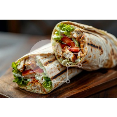 Υπάρχει δυνατότητα προσωποποίησης με δική σας φωτογραφία και προσαρμογής διαστάσεων κατόπιν παραγγελίας. Το συγεκεριμενο puzzle παρουσιαζει Αυτή η εικόνα παρουσιάζει ένα νόστιμο και ορεκτικό περιτύλιγμα γεμάτο με ψητό κοτόπουλο, φρέσκο μαρούλι, ντομάτες σε φέτες και μαγιονέζα, όλα τυλιγμένα σε μια φρυγανισμένη τορτίγια. Τα ζωηρά χρώματα των συστατικών ξεχωρίζουν στους ζεστούς τόνους του ξύλινου φόντου. Το περιτύ