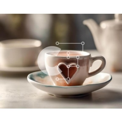 Υπάρχει δυνατότητα προσωποποίησης με δική σας φωτογραφία και προσαρμογής διαστάσεων κατόπιν παραγγελίας. Το συγεκεριμενο puzzle παρουσιαζει Αυτή η εικόνα παρουσιάζει μια γοητευτική σκηνή τσαγιού με ένα φλιτζάνι και πιατάκι, καθώς και δύο τσαγιέρες στο τραπέζι. Ένα φλιτζάνι καφέ σε σχήμα καρδιάς τοποθετείται στη μέση του πιάτου, με ένα άλλο φλιτζάνι να ακουμπάει πάνω του. Επιπλέον, πολλά μικρά πιάτα κοντά σας προτε