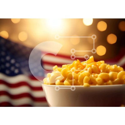 Υπάρχει δυνατότητα προσωποποίησης με δική σας φωτογραφία και προσαρμογής διαστάσεων κατόπιν παραγγελίας. Το συγεκεριμενο puzzle παρουσιαζει Αυτή η εικόνα δείχνει ένα μπολ με μακαρόνια και τυρί με μια αμερικανική σημαία στο φόντο. Το μπολ είναι γεμάτο με κρεμώδη ζυμαρικά και υπάρχουν κουτάλια τοποθετημένα στο τραπέζι δίπλα του, υποδηλώνοντας μια διάταξη σερβιρίσματος. Ένα μοναδικό puzzle που συνδυάζει ποιότητα, αι