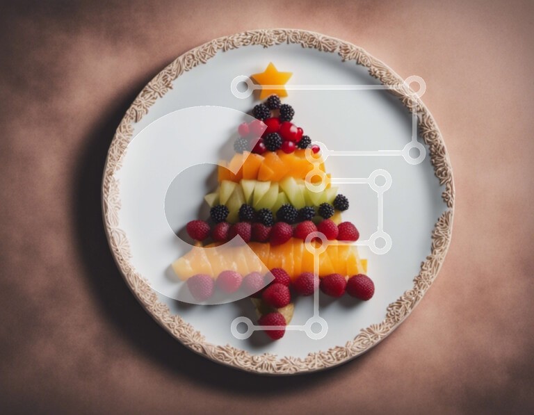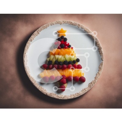Υπάρχει δυνατότητα προσωποποίησης με δική σας φωτογραφία και προσαρμογής διαστάσεων κατόπιν παραγγελίας. Το συγεκεριμενο puzzle παρουσιαζει Αυτή η εικόνα παρουσιάζει μια διάταξη φρούτων και λαχανικών σε σχήμα χριστουγεννιάτικου δέντρου σε ένα λευκό πιάτο. Η σύνθεση περιλαμβάνει μήλα, πορτοκάλια, φράουλες και σμέουρα, που σχηματίζουν το σχήμα ενός χριστουγεννιάτικου δέντρου. Υπάρχουν και μικρά κομμάτια ψωμιού στο π