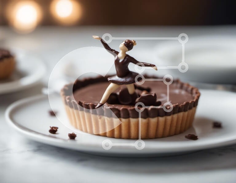 Υπάρχει δυνατότητα προσωποποίησης με δική σας φωτογραφία και προσαρμογής διαστάσεων κατόπιν παραγγελίας. Το συγεκεριμενο puzzle παρουσιαζει Αυτή η εικόνα δείχνει ένα επιδόρπιο καλυμμένο με σοκολάτα με δύο ειδώλια χορευτών να στέκονται από πάνω. Το γλυκό στολίζεται με μικρά κομμάτια σοκολάτας και παρουσιάζεται σε πιατέλα. Διακρίνονται επίσης ασημικά και χαρτοπετσέτες, υποδηλώνοντας την παρουσία καλεσμένων ή μελών τ