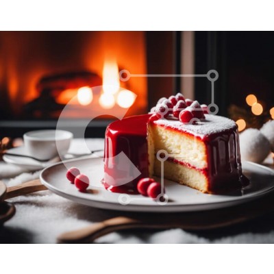 Υπάρχει δυνατότητα προσωποποίησης με δική σας φωτογραφία και προσαρμογής διαστάσεων κατόπιν παραγγελίας. Το συγεκεριμενο puzzle παρουσιαζει Αυτή η εικόνα παρουσιάζει μια νόστιμη φέτα κέικ με κόκκινα μούρα στην κορυφή, τοποθετημένη μπροστά από ένα ανοιχτό τζάκι. Ένα φλιτζάνι είναι τοποθετημένο δίπλα στο κέικ, υποδηλώνοντας ότι θα μπορούσε να συνδυαστεί με καφέ ή τσάι. Το τραπέζι είναι στολισμένο με πολλά μπολ και κ