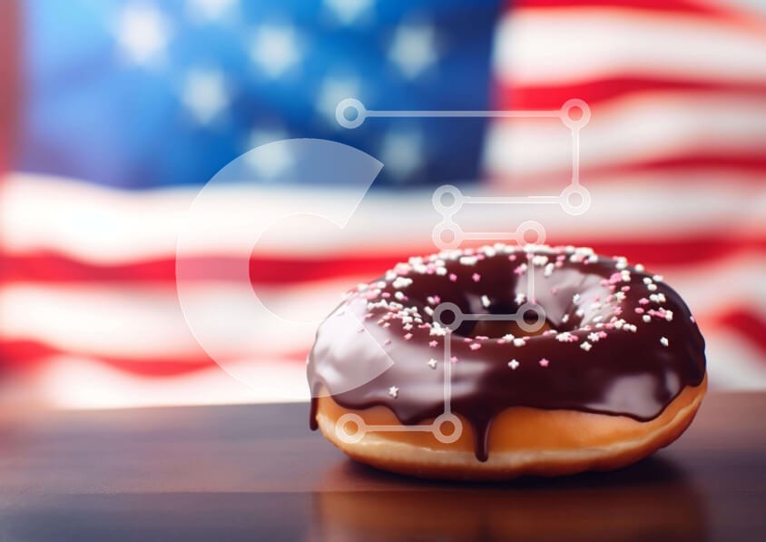Υπάρχει δυνατότητα προσωποποίησης με δική σας φωτογραφία και προσαρμογής διαστάσεων κατόπιν παραγγελίας. Το συγεκεριμενο puzzle παρουσιαζει Η εικόνα δείχνει ένα ντόνατ με γλάσο σοκολάτας και πολύχρωμα ψεκάσματα τοποθετημένα σε ένα τραπέζι μπροστά από μια αμερικανική σημαία. Το πατριωτικό θέμα υποδηλώνει ότι ήταν προετοιμασμένο για τον εορτασμό της 4ης Ιουλίου. Άλλα αντικείμενα όπως φλιτζάνια, χαρτοπετσέτες και πιά