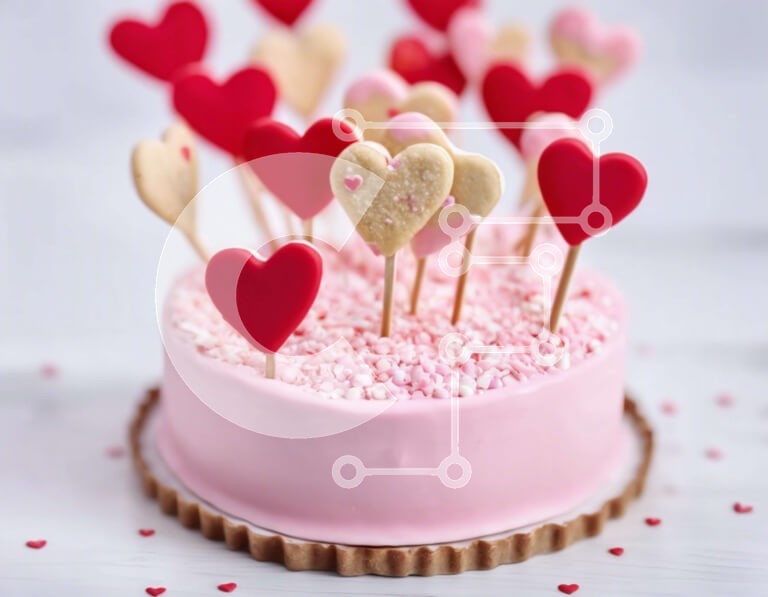 Υπάρχει δυνατότητα προσωποποίησης με δική σας φωτογραφία και προσαρμογής διαστάσεων κατόπιν παραγγελίας. Το συγεκεριμενο puzzle παρουσιαζει Αυτή η εικόνα παρουσιάζει ένα ροζ κέικ διακοσμημένο με μπισκότα σε σχήμα καρδιάς και οδοντογλυφίδες. Η τούρτα τοποθετείται σε ένα τραπέζι με σκόρπιες καρδιές, δημιουργώντας μια γιορτινή και γιορτινή ατμόσφαιρα. Είναι το τέλειο επιδόρπιο για την ημέρα του Αγίου Βαλεντίνου. Ένα