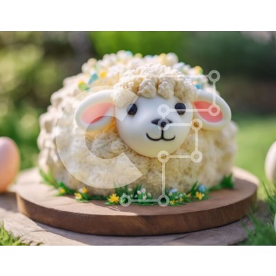 Υπάρχει δυνατότητα προσωποποίησης με δική σας φωτογραφία και προσαρμογής διαστάσεων κατόπιν παραγγελίας. Το συγεκεριμενο puzzle παρουσιαζει Η εικόνα παρουσιάζει ένα γοητευτικό κέικ σε σχήμα προβάτου, διακοσμημένο με διακοσμητικά λουλούδια και αυγά, τοποθετημένο σε μια εξωτερική ξύλινη σανίδα κοπής. Το σκηνικό υποδηλώνει ότι η τούρτα είναι φτιαγμένη για μια γιορτή του Πάσχα, με μικρά πλαστικά αυγά σκορπισμένα τριγύ