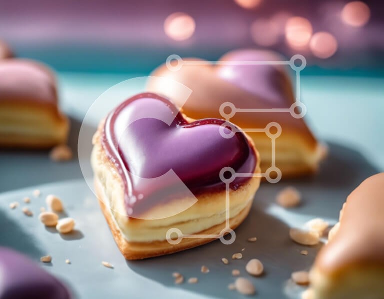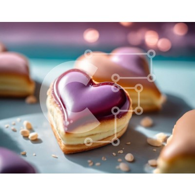 Υπάρχει δυνατότητα προσωποποίησης με δική σας φωτογραφία και προσαρμογής διαστάσεων κατόπιν παραγγελίας. Το συγεκεριμενο puzzle παρουσιαζει Αυτή η εικόνα παρουσιάζει μια απολαυστική διάταξη από αρτοσκευάσματα σε σχήμα καρδιάς σε μια μπλε επιφάνεια εργασίας. Τα αρτοσκευάσματα είναι διακοσμημένα με κόκκινα, ροζ και μωβ χρώματα, που θυμίζουν την Ημέρα του Αγίου Βαλεντίνου ή άλλες ειδικές περιστάσεις. Υπάρχουν επίσης