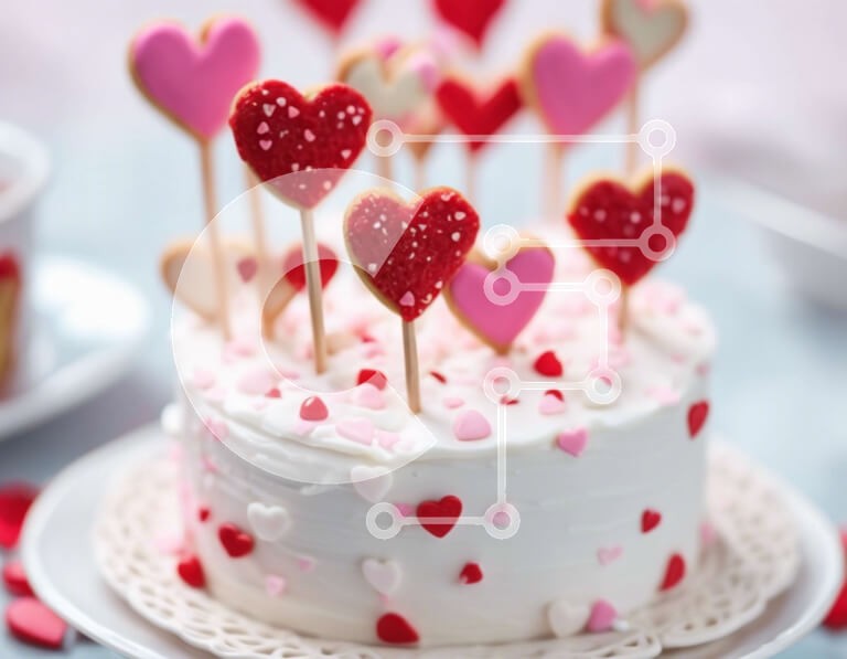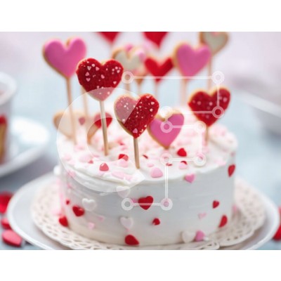 Υπάρχει δυνατότητα προσωποποίησης με δική σας φωτογραφία και προσαρμογής διαστάσεων κατόπιν παραγγελίας. Το συγεκεριμενο puzzle παρουσιαζει Αυτή η εικόνα δείχνει ένα λευκό κέικ διακοσμημένο με κόκκινες και λευκές καρδιές, μαζί με μικρά μπισκότα από πάνω. Στην εικόνα περιλαμβάνεται ένα φλιτζάνι, που προτείνει ένα συνδυασμό ροφήματος για το επιδόρπιο. Η σκηνή παραπέμπει σε μια χαρούμενη γιορτή του Αγίου Βαλεντίνου μ