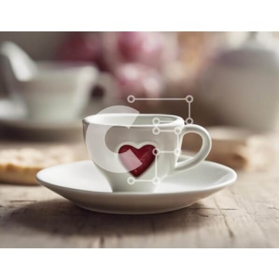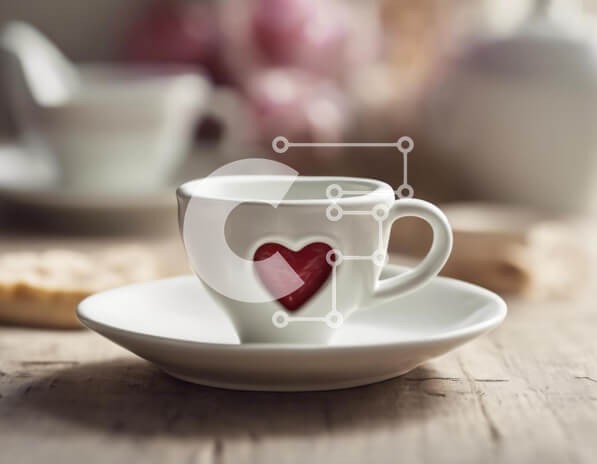 Υπάρχει δυνατότητα προσωποποίησης με δική σας φωτογραφία και προσαρμογής διαστάσεων κατόπιν παραγγελίας. Το συγεκεριμενο puzzle παρουσιαζει Αυτή η εικόνα παρουσιάζει ένα λευκό φλιτζάνι καφέ και ένα πιατάκι τοποθετημένο σε ένα παλιό ξύλινο τραπέζι, μαζί με ένα κόκκινο μπισκότο σε σχήμα καρδιάς. Άλλα αντικείμενα όπως πιάτα, φλιτζάνια και μπολ είναι επίσης ορατά, δημιουργώντας ένα ζεστό και φιλόξενο σκηνικό. Ένα μον
