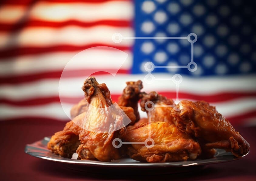 Υπάρχει δυνατότητα προσωποποίησης με δική σας φωτογραφία και προσαρμογής διαστάσεων κατόπιν παραγγελίας. Το συγεκεριμενο puzzle παρουσιαζει Αυτή η εικόνα δείχνει ένα πιάτο με τηγανητές φτερούγες κοτόπουλου με την αμερικανική σημαία στο φόντο. Οι χρυσοκαφέ φτερούγες κοτόπουλου είναι διατεταγμένες ελκυστικά στο πιάτο, προσκαλώντας τον θεατή να απολαύσει την αλμυρή καλοσύνη τους. Ένα μοναδικό puzzle που συνδυάζει πο