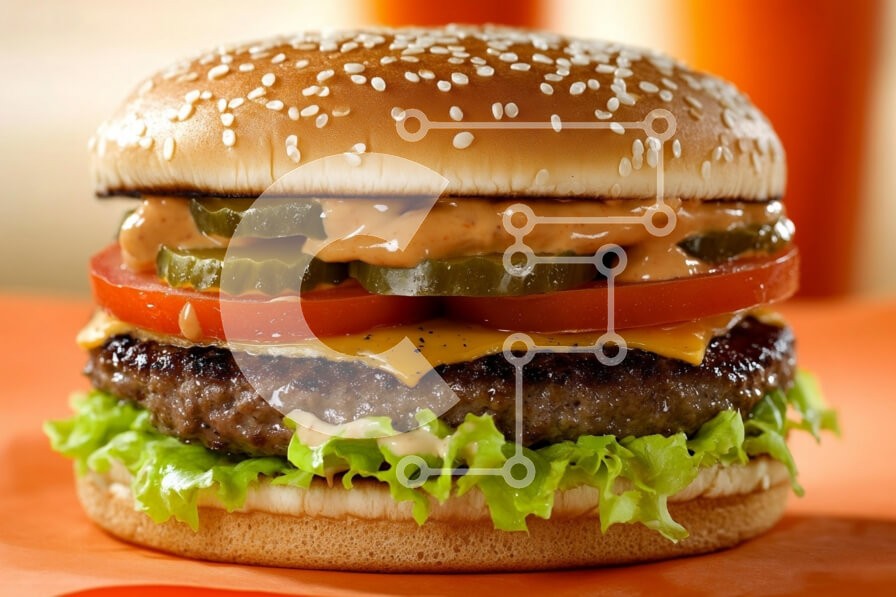 Υπάρχει δυνατότητα προσωποποίησης με δική σας φωτογραφία και προσαρμογής διαστάσεων κατόπιν παραγγελίας. Το συγεκεριμενο puzzle παρουσιαζει Η εικόνα δείχνει ένα νόστιμο χάμπουργκερ που περιλαμβάνει ένα τσουρέκι με σουσαμιού με φρέσκο μαρούλι, ένα ζουμερό μοσχαρίσιο μπιφτέκι, λιωμένο τυρί και φέτες ντομάτας και τουρσί. Το μπιφτέκι είναι όμορφα τοποθετημένο, με μια πλούσια σάλτσα προσθέτοντας ένα γυαλιστερό φινίρι