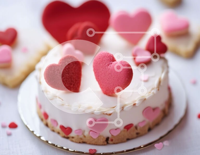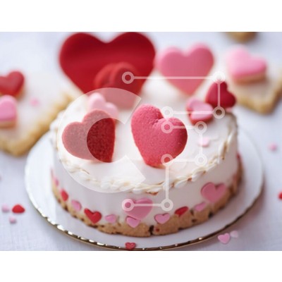 Υπάρχει δυνατότητα προσωποποίησης με δική σας φωτογραφία και προσαρμογής διαστάσεων κατόπιν παραγγελίας. Το συγεκεριμενο puzzle παρουσιαζει Αυτή η εικόνα παρουσιάζει ένα λευκό κέικ διακοσμημένο με κόκκινες και ροζ καρδιές, καθώς και μπισκότα τοποθετημένα πάνω από το κέικ. Υπάρχουν επίσης διάφορα μπισκότα σε σχήμα καρδιάς διάσπαρτα γύρω από το τραπέζι, τα οποία θα μπορούσαν να χρησιμοποιηθούν για τη διακόσμηση ή το