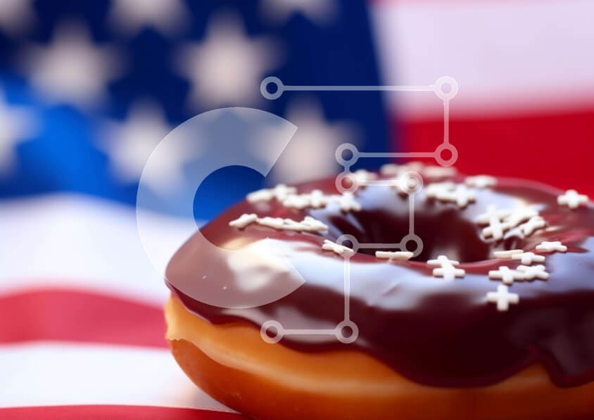 Υπάρχει δυνατότητα προσωποποίησης με δική σας φωτογραφία και προσαρμογής διαστάσεων κατόπιν παραγγελίας. Το συγεκεριμενο puzzle παρουσιαζει Η εικόνα παρουσιάζει ένα ντόνατ με πασπαλισμένο σοκολάτα τοποθετημένο μπροστά από μια αμερικανική σημαία. Το ντόνατ κάθεται πάνω από τη σημαία και είναι πιθανό να καταναλωθεί από ένα ή περισσότερα άτομα. Ένα μοναδικό puzzle που συνδυάζει ποιότητα, αισθητική και εμπειρία. Υλι
