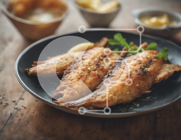Υπάρχει δυνατότητα προσωποποίησης με δική σας φωτογραφία και προσαρμογής διαστάσεων κατόπιν παραγγελίας. Το συγεκεριμενο puzzle παρουσιαζει Αυτή η εικόνα παρουσιάζει δύο τέλεια τηγανισμένα φιλέτα ψαριού που σερβίρονται σε μαύρο πιάτο, συνοδευόμενα από φέτες λεμονιού και φρέσκο μαϊντανό. Τα ζωηρά χρώματα και η προσοχή στη λεπτομέρεια κάνουν αυτό το πιάτο απίστευτα ορεκτικό. Το φόντο περιλαμβάνει διάφορα καρυκεύμα