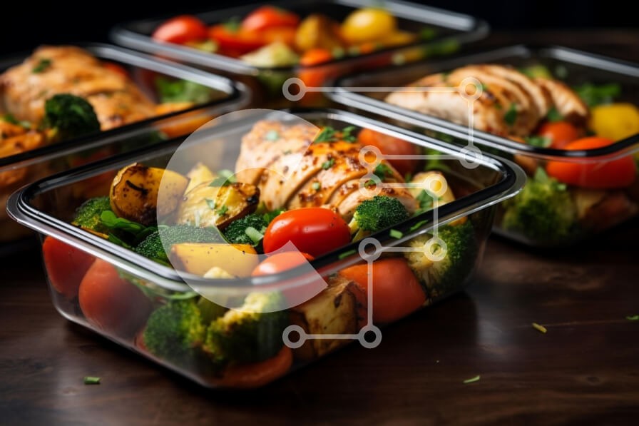 Υπάρχει δυνατότητα προσωποποίησης με δική σας φωτογραφία και προσαρμογής διαστάσεων κατόπιν παραγγελίας. Το συγεκεριμενο puzzle παρουσιαζει Η εικόνα παρουσιάζει τέσσερα πλαστικά δοχεία γεμάτα με μια ποικιλία τροφών, όπως κοτόπουλο, μπρόκολο και ντομάτες. Τα δοχεία στοιβάζονται, υποδεικνύοντας ότι το φαγητό είναι έτοιμο για κατανάλωση. Στο κέντρο του τραπεζιού, υπάρχουν μικρά μπολ που μπορεί να χωρέσουν επιπλέον υλ