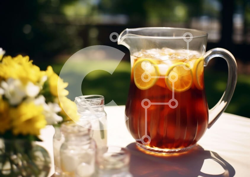 Υπάρχει δυνατότητα προσωποποίησης με δική σας φωτογραφία και προσαρμογής διαστάσεων κατόπιν παραγγελίας. Το συγεκεριμενο puzzle παρουσιαζει Η εικόνα δείχνει μια κανάτα με παγωμένο τσάι με φέτες λεμονιού σε ένα υπαίθριο τραπέζι, που περιβάλλεται από βάζα γεμάτα με διάφορα ποτά όπως νερό, καφέ και τσάι. Στο βάθος, υπάρχουν ορατά λουλούδια που προσθέτουν μια πινελιά φύσης στη σκηνή. Ένα μοναδικό puzzle που συνδυάζει