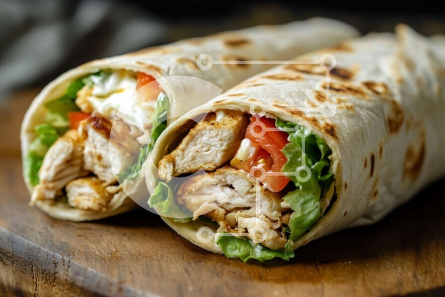 Υπάρχει δυνατότητα προσωποποίησης με δική σας φωτογραφία και προσαρμογής διαστάσεων κατόπιν παραγγελίας. Το συγεκεριμενο puzzle παρουσιαζει Αυτή η εικόνα παρουσιάζει δύο νόστιμα περιτυλίγματα κοτόπουλου γεμάτα με ψητό κοτόπουλο, μαρούλι, ντομάτες και μια κρεμώδη σάλτσα, όλα τυλιγμένα σε ένα μαλακό ψωμί. Τα περιτυλίγματα παρουσιάζονται σε ξύλινη επιφάνεια, αναδεικνύοντας την ορεκτική εμφάνισή τους με χρυσοκαφέ κομμ