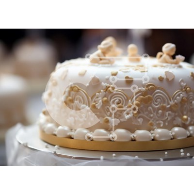 Υπάρχει δυνατότητα προσωποποίησης με δική σας φωτογραφία και προσαρμογής διαστάσεων κατόπιν παραγγελίας. Το συγεκεριμενο puzzle παρουσιαζει Αυτή η εικόνα παρουσιάζει μια όμορφα διακοσμημένη τούρτα, που παρουσιάζει περίπλοκα σχέδια σε λευκό και χρυσό. Το κέικ έχει απαλό πάγωμα με περίτεχνες λεπτομέρειες σωληνώσεων κατά μήκος των άκρων και μικρές διακοσμητικές φιγούρες από πάνω. Η συνολική παρουσίαση είναι κομψή, κα