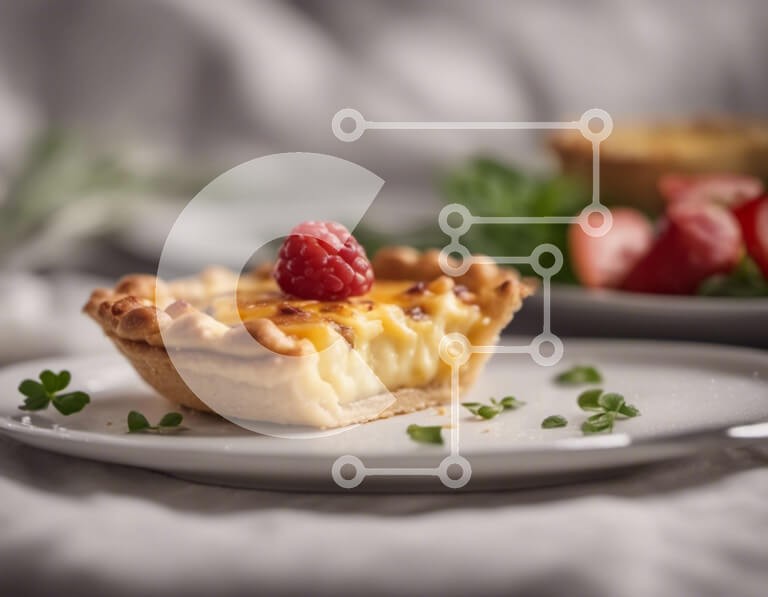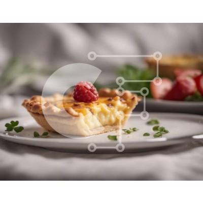 Υπάρχει δυνατότητα προσωποποίησης με δική σας φωτογραφία και προσαρμογής διαστάσεων κατόπιν παραγγελίας. Το συγεκεριμενο puzzle παρουσιαζει Αυτή η εικόνα παρουσιάζει μια γκουρμέ πίτα τοποθετημένη σε λευκό πιάτο, περιτριγυρισμένη από φρέσκα χόρτα και στολισμένη με σμέουρα. Η πίτα είναι το εστιακό σημείο της εικόνας, με αποτέλεσμα να φαίνεται μεγαλύτερη από το πραγματικό της μέγεθος. Ένα μικρό κομμάτι φράουλας κοντά