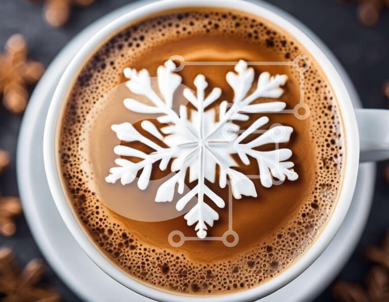Υπάρχει δυνατότητα προσωποποίησης με δική σας φωτογραφία και προσαρμογής διαστάσεων κατόπιν παραγγελίας. Το συγεκεριμενο puzzle παρουσιαζει Αυτή η εικόνα παρουσιάζει ένα φλιτζάνι καφέ με διακόσμηση με νιφάδα χιονιού στη μέση, που περιβάλλεται από νιφάδες χιονιού και άλλα διακοσμητικά με θέμα το χειμώνα. Είναι ιδανική επιλογή για διαφημίσεις ή διαφημιστικό υλικό που σχετίζεται με ροφήματα με θέμα το χειμώνα, όπως ζ