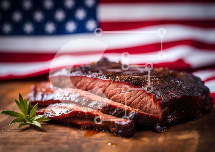 Υπάρχει δυνατότητα προσωποποίησης με δική σας φωτογραφία και προσαρμογής διαστάσεων κατόπιν παραγγελίας. Το συγεκεριμενο puzzle παρουσιαζει Η εικόνα δείχνει ένα κομμάτι κρέας στη σχάρα να κάθεται πάνω από μια ξύλινη σανίδα κοπής σε σχήμα αμερικανικής σημαίας. Το κρέας καλύπτεται με σάλτσα και γαρνίρεται με κλωνάρια δεντρολίβανου, υποδηλώνοντας ότι μπορεί να έχει μαγειρευτεί το Σαββατοκύριακο ή την περίοδο των γιορ