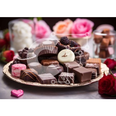 Υπάρχει δυνατότητα προσωποποίησης με δική σας φωτογραφία και προσαρμογής διαστάσεων κατόπιν παραγγελίας. Το συγεκεριμενο puzzle παρουσιαζει Η εικόνα παρουσιάζει ένα πιάτο γεμάτο με διάφορους τύπους σοκολάτες και καραμέλες, μερικά από τα οποία φαίνεται να έχουν σχήμα καρδιάς. Υπάρχουν επίσης πολλά τριαντάφυλλα στο τραπέζι, υποδηλώνοντας ότι αυτό είναι το ιδανικό σκηνικό για τον εορτασμό της Ημέρας του Αγίου Βαλεντί