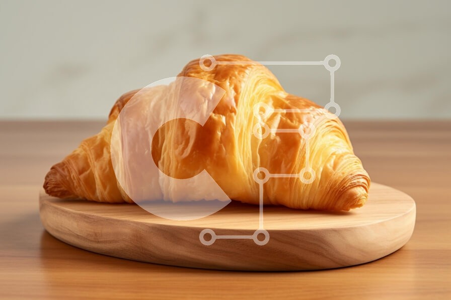 Υπάρχει δυνατότητα προσωποποίησης με δική σας φωτογραφία και προσαρμογής διαστάσεων κατόπιν παραγγελίας. Το συγεκεριμενο puzzle παρουσιαζει Αυτή η εικόνα δείχνει ένα όμορφα ψημένο κρουασάν που στηρίζεται σε μια στρογγυλή ξύλινη σανίδα σερβιρίσματος. Το κρουασάν είναι χρυσοκαφέ και ξεφλουδισμένο, με ορατές στρώσεις που αναδεικνύουν την υφή ζαχαροπλαστικής του. Το φόντο διαθέτει ένα διακριτικό ανοιχτό χρώμα, ενισχύο