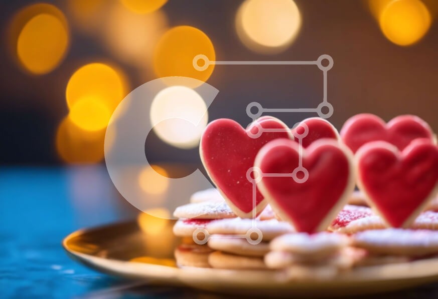 Υπάρχει δυνατότητα προσωποποίησης με δική σας φωτογραφία και προσαρμογής διαστάσεων κατόπιν παραγγελίας. Το συγεκεριμενο puzzle παρουσιαζει Αυτή η εικόνα παρουσιάζει ένα πιάτο με μπισκότα σε σχήμα καρδιάς, όμορφα διακοσμημένα για την Ημέρα του Αγίου Βαλεντίνου ή άλλες ειδικές περιστάσεις. Τα μπισκότα τοποθετούνται πάνω από ένα διακοσμητικό χρυσό πιάτο, προσθέτοντας μια πινελιά κομψότητας. Κόκκινα και λευκά πασπαλί