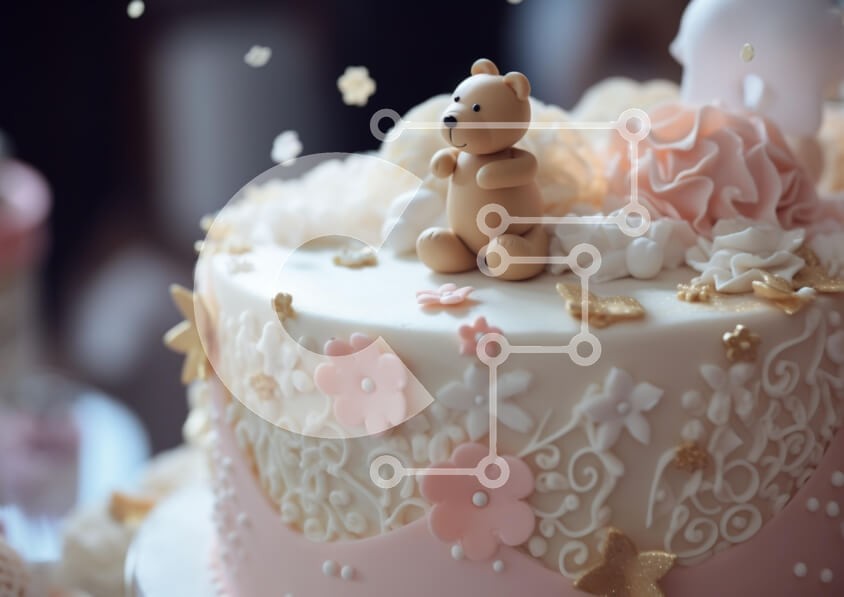 Υπάρχει δυνατότητα προσωποποίησης με δική σας φωτογραφία και προσαρμογής διαστάσεων κατόπιν παραγγελίας. Το συγεκεριμενο puzzle παρουσιαζει Αυτή η εικόνα παρουσιάζει μια όμορφα διακοσμημένη τούρτα διακοσμημένη με παστέλ χρώματα και περίπλοκα σχέδια. Στην κορυφή της τούρτας, υπάρχει ένα χαριτωμένο, μικρό ειδώλιο αρκούδας, που περιβάλλεται από ευαίσθητα λουλούδια και διακοσμητικά στοιχεία, συμπεριλαμβανομένων στροβι