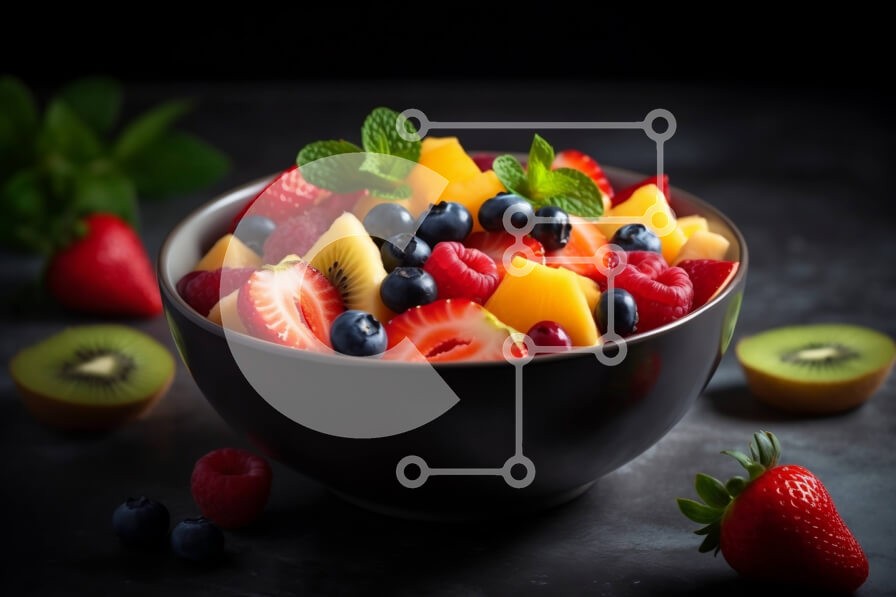 Υπάρχει δυνατότητα προσωποποίησης με δική σας φωτογραφία και προσαρμογής διαστάσεων κατόπιν παραγγελίας. Το συγεκεριμενο puzzle παρουσιαζει Αυτή η εικόνα παρουσιάζει ένα μπολ με φρέσκια φρουτοσαλάτα με ακτινίδιο, φράουλες και βατόμουρα. Το σκούρο φόντο προσφέρει μια όμορφη αντίθεση με τα έντονα χρώματα των φρούτων, κάνοντας αυτή την εικόνα μια γιορτή για τα μάτια αλλά και τους γευστικούς κάλυκες. Αυτή είναι μια τέ