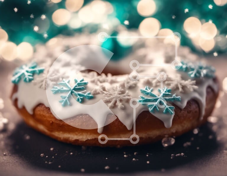Υπάρχει δυνατότητα προσωποποίησης με δική σας φωτογραφία και προσαρμογής διαστάσεων κατόπιν παραγγελίας. Το συγεκεριμενο puzzle παρουσιαζει Αυτή η εικόνα παρουσιάζει ένα υπέροχο ντόνατ καλυμμένο με γλάσο και διακοσμημένο με νιφάδες χιονιού. Τοποθετείται πάνω από ένα τεχνητό χριστουγεννιάτικο δέντρο, δημιουργώντας ένα εορταστικό και χαρούμενο σκηνικό. Τα αστραφτερά φώτα που περιβάλλουν το ντόνατ προσθέτουν στην εορ
