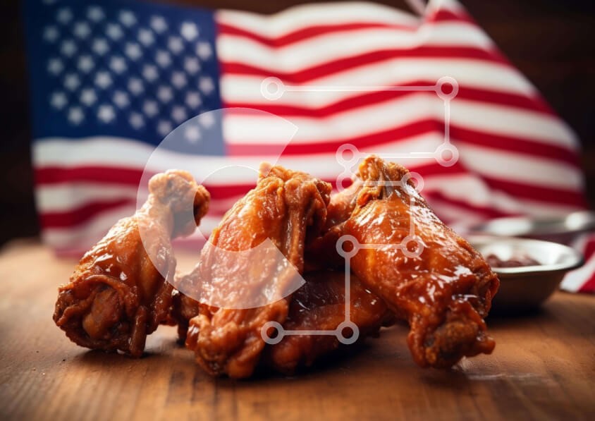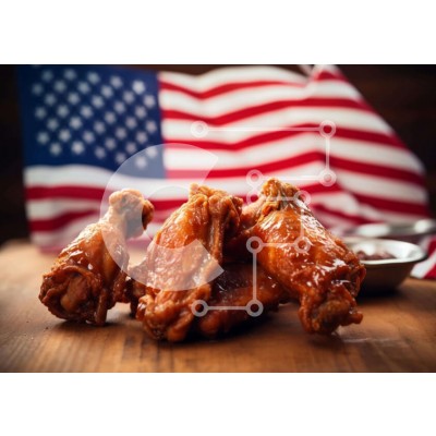 Υπάρχει δυνατότητα προσωποποίησης με δική σας φωτογραφία και προσαρμογής διαστάσεων κατόπιν παραγγελίας. Το συγεκεριμενο puzzle παρουσιαζει Η εικόνα παρουσιάζει τρεις φτερούγες κοτόπουλου τοποθετημένες σε ένα ξύλινο τραπέζι μπροστά από μια αμερικανική σημαία. Μπολ, κουτάλια και καρυκεύματα είναι επίσης ορατά, υποδεικνύοντας ότι το φαγητό είναι έτοιμο για σερβίρισμα. Ένα μοναδικό puzzle που συνδυάζει ποιότητα, αισ