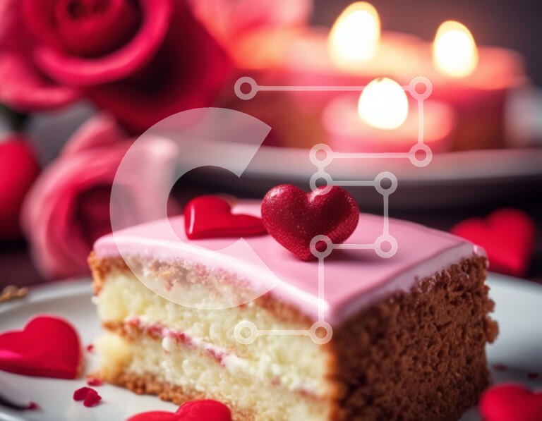 Υπάρχει δυνατότητα προσωποποίησης με δική σας φωτογραφία και προσαρμογής διαστάσεων κατόπιν παραγγελίας. Το συγεκεριμενο puzzle παρουσιαζει Αυτή η εικόνα παρουσιάζει μια φέτα κέικ διακοσμημένη για την Ημέρα του Αγίου Βαλεντίνου. Η τούρτα στολίζεται με κόκκινα τριαντάφυλλα και καρδιές, δημιουργώντας μια ρομαντική και γιορτινή ατμόσφαιρα. Γύρω από το πιάτο τοποθετούνται κεριά, υποδηλώνοντας ότι μπορεί να είναι μέρος