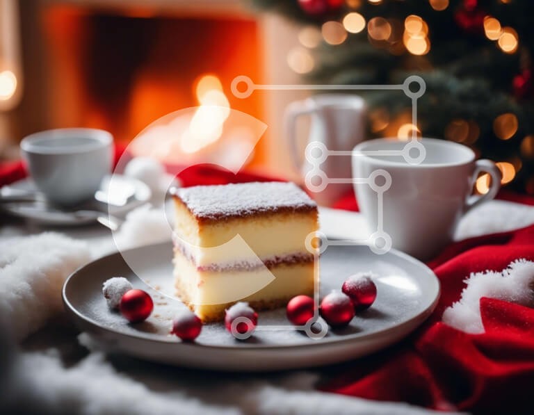 Υπάρχει δυνατότητα προσωποποίησης με δική σας φωτογραφία και προσαρμογής διαστάσεων κατόπιν παραγγελίας. Το συγεκεριμενο puzzle παρουσιαζει Αυτή η εικόνα παρουσιάζει ένα κομμάτι κέικ, δύο φλιτζάνια καφέ και διάφορα στολίδια σε ένα γιορτινό τραπέζι. Η τούρτα είναι στολισμένη με κόκκινα και λευκά χρώματα, υποδηλώνοντας τη συσχέτισή της με την περίοδο των γιορτών. Χριστουγεννιάτικες μπάλες είναι επίσης διάσπαρτες γύρ