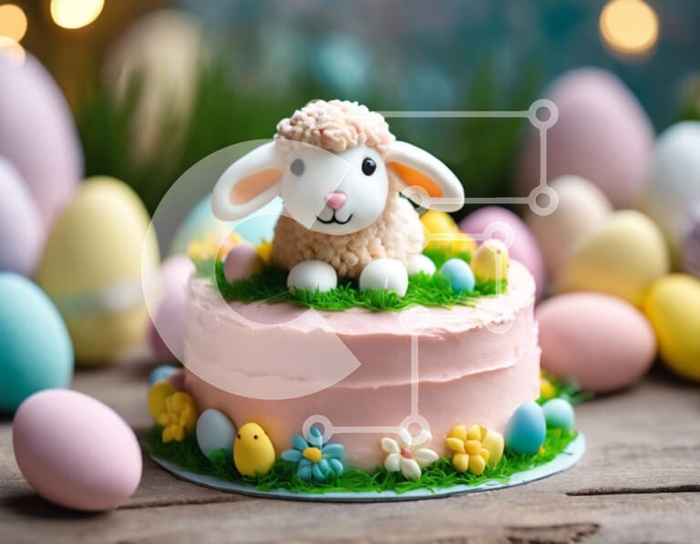 Υπάρχει δυνατότητα προσωποποίησης με δική σας φωτογραφία και προσαρμογής διαστάσεων κατόπιν παραγγελίας. Το συγεκεριμενο puzzle παρουσιαζει Η εικόνα δείχνει ένα ροζ κέικ στολισμένο με ένα ειδώλιο προβάτου με θέμα το Πάσχα, που περιβάλλεται από πολύχρωμα αυγά. Το εορταστικό σκηνικό υποδηλώνει ότι η τούρτα είναι μέρος μιας γιορτής του Πάσχα. Στο βάθος, υπάρχουν κουνελάκια που ενισχύουν ακόμη περισσότερο το πασχαλινό