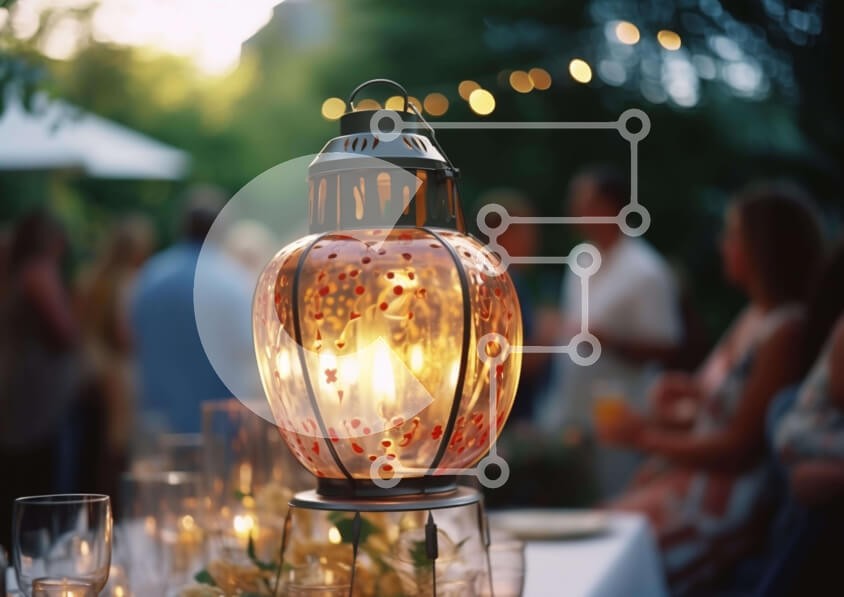 Υπάρχει δυνατότητα προσωποποίησης με δική σας φωτογραφία και προσαρμογής διαστάσεων κατόπιν παραγγελίας. Το συγεκεριμενο puzzle παρουσιαζει Η εικόνα απεικονίζει μια τραπεζαρία με πολλά ποτήρια, πιάτα και ποτά πάνω της. Ένα φανάρι τοποθετείται στη μέση του τραπεζιού, παρέχοντας φωτισμό στους καλεσμένους καθώς απολαμβάνουν το γεύμα τους σε εξωτερικούς χώρους. Υπάρχουν πολλά άτομα παρόντα στην εκδήλωση, μερικά από τα