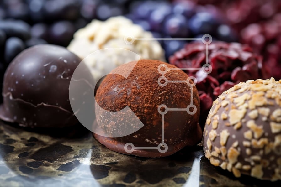 Υπάρχει δυνατότητα προσωποποίησης με δική σας φωτογραφία και προσαρμογής διαστάσεων κατόπιν παραγγελίας. Το συγεκεριμενο puzzle παρουσιαζει Αυτή η εικόνα παρουσιάζει μια ποικιλία από τρούφες γεμάτες σοκολάτα και φρούτα τοποθετημένες πάνω από ένα όμορφα σχεδιασμένο μαρμάρινο τραπέζι. Τα επιδόρπια περιλαμβάνουν μπάλες μαύρης σοκολάτας, βατόμουρα, φράουλες και σμέουρα, τα οποία είναι όλα προσεκτικά τοποθετημένα για μ