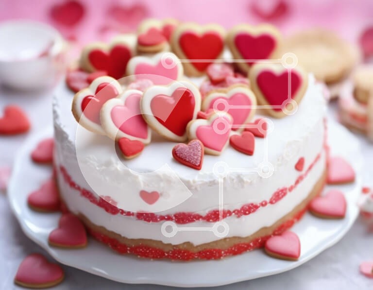 Υπάρχει δυνατότητα προσωποποίησης με δική σας φωτογραφία και προσαρμογής διαστάσεων κατόπιν παραγγελίας. Το συγεκεριμενο puzzle παρουσιαζει Αυτή η εικόνα παρουσιάζει ένα κέικ σε σχήμα καρδιάς διακοσμημένο με κόκκινες και λευκές καρδιές, καθώς και μπισκότα τοποθετημένα από πάνω. Το σκηνικό αποπνέει μια εορταστική ατμόσφαιρα, που ταιριάζει στους εορτασμούς του Αγίου Βαλεντίνου. Η διάσπαρτη καραμέλα σε όλη την εικόνα