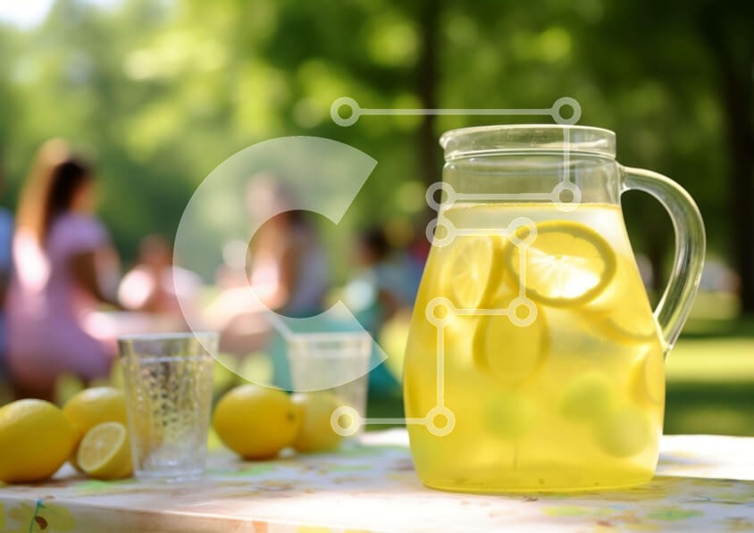 Υπάρχει δυνατότητα προσωποποίησης με δική σας φωτογραφία και προσαρμογής διαστάσεων κατόπιν παραγγελίας. Το συγεκεριμενο puzzle παρουσιαζει Η εικόνα δείχνει μια στάμνα με λεμονάδα τοποθετημένη σε ένα τραπέζι πικνίκ στο πάρκο. Πολλά άτομα κάθονται γύρω από τη στάμνα, με μερικά να απολαμβάνουν εμφανώς το ρόφημα ενώ άλλα παρατηρούν τα διάσπαρτα λεμόνια στο τραπέζι. Επιπλέον, μια ομάδα ατόμων κάθεται κοντά, πιθανώς με