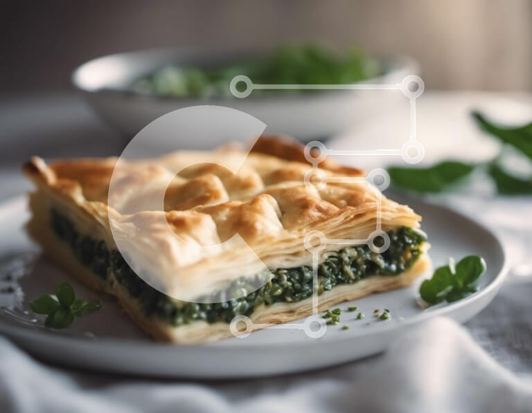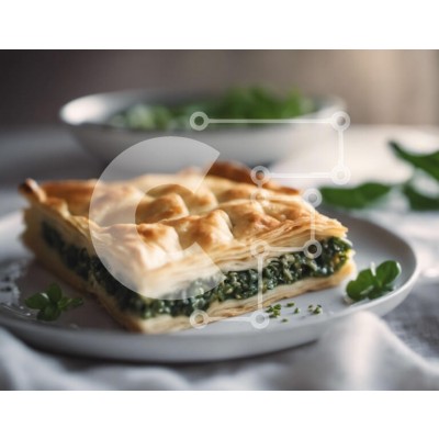 Υπάρχει δυνατότητα προσωποποίησης με δική σας φωτογραφία και προσαρμογής διαστάσεων κατόπιν παραγγελίας. Το συγεκεριμενο puzzle παρουσιαζει Αυτή η εικόνα παρουσιάζει μια απολαυστική σπανακόπιτα τοποθετημένη πάνω από ένα καθαρό λευκό πιάτο. Το πρώτο πλάνο περιλαμβάνει ένα μικρό μπολ με χόρτα, υποδεικνύοντας ότι μπορεί να είναι μέρος του γεύματος. Η παρουσία διάσπαρτων φύλλων γύρω από το πιάτο υποδηλώνει τη χρήση φρ