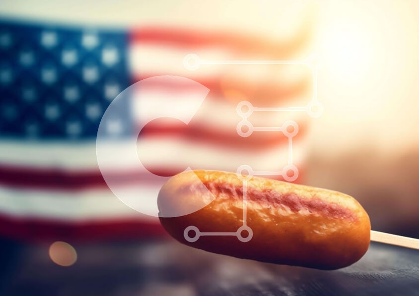 Υπάρχει δυνατότητα προσωποποίησης με δική σας φωτογραφία και προσαρμογής διαστάσεων κατόπιν παραγγελίας. Το συγεκεριμενο puzzle παρουσιαζει Αυτή η εικόνα δείχνει ένα χοτ ντογκ τυλιγμένο με μπέικον με μια αμερικανική σημαία στο φόντο. Το χοτ ντογκ είναι φωλιασμένο σε ένα κουλούρι σε ένα ξύλινο ραβδί, ιδανικό για σερβίρισμα σε πάρτι ή εκδηλώσεις ως ορεκτικά ή ορεκτικά. Ένα μοναδικό puzzle που συνδυάζει ποιότητα, αι