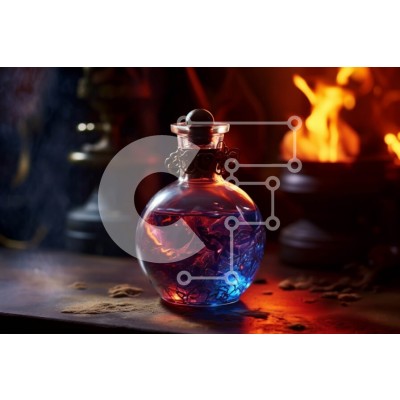 Υπάρχει δυνατότητα προσωποποίησης με δική σας φωτογραφία και προσαρμογής διαστάσεων κατόπιν παραγγελίας. Το συγεκεριμενο puzzle παρουσιαζει Αυτή η εικόνα παρουσιάζει ένα μπουκάλι που περιέχει ένα μπλε και κόκκινο υγρό τοποθετημένο σε ένα τραπέζι. Στο βάθος, υπάρχει ένα κερί που εκπέμπει μια ζεστή λάμψη. Η σύνθεση δημιουργεί μια οπτικά εντυπωσιακή και ενδιαφέρουσα σκηνή. Ένα μοναδικό puzzle που συνδυάζει ποιότητα,