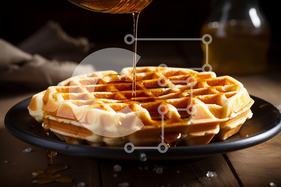 Υπάρχει δυνατότητα προσωποποίησης με δική σας φωτογραφία και προσαρμογής διαστάσεων κατόπιν παραγγελίας. Το συγεκεριμενο puzzle παρουσιαζει Αυτή η εικόνα παρουσιάζει μια νόστιμη βάφλα τοποθετημένη σε ένα μαύρο πιάτο, με χρυσό σιρόπι να περιχύνεται πάνω της. Η βάφλα είναι τέλεια μαγειρεμένη, αναδεικνύοντας την τραγανή υφή και το μοτίβο πλέγματος της. Το φόντο είναι κάπως σκούρο, τονίζοντας τις χρυσές αποχρώσεις του