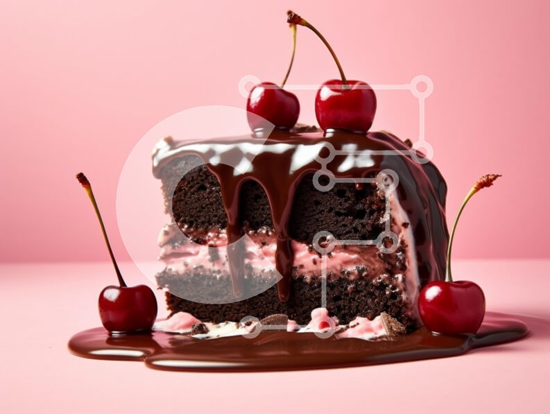 Υπάρχει δυνατότητα προσωποποίησης με δική σας φωτογραφία και προσαρμογής διαστάσεων κατόπιν παραγγελίας. Το συγεκεριμενο puzzle παρουσιαζει Αυτή η εικόνα παρουσιάζει ένα απολαυστικό κέικ σοκολάτας με στρώσεις ροζ γέμισης, που ολοκληρώνεται με μια γυαλιστερή γκανάς σοκολάτας που πέφτει στα πλαϊνά. Το κέικ γαρνίρεται με έντονα κόκκινα κεράσια, προσθέτοντας ένα ποπ χρώμα στο απαλό ροζ φόντο. Η σάλτσα σοκολάτας απλώνε