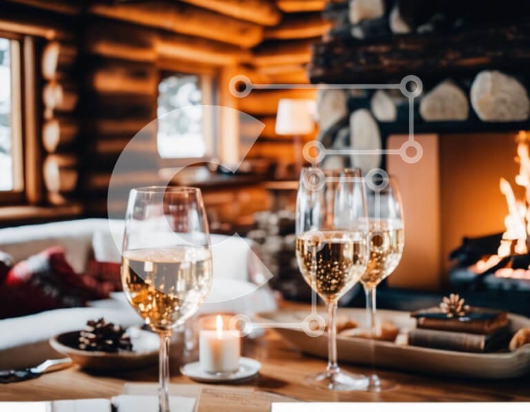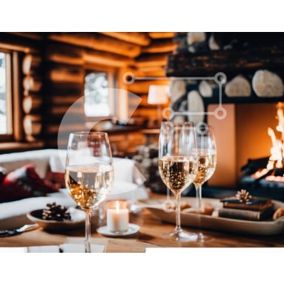 Υπάρχει δυνατότητα προσωποποίησης με δική σας φωτογραφία και προσαρμογής διαστάσεων κατόπιν παραγγελίας. Το συγεκεριμενο puzzle παρουσιαζει Αυτή η εικόνα παρουσιάζει δύο ποτήρια κρασιού σε ένα ξύλινο τραπέζι μπροστά από ένα ανοιχτό τζάκι. Τα ποτήρια γεμίζουν με σαμπάνια, δημιουργώντας μια γιορτινή και εορταστική ατμόσφαιρα. Το τραπέζι είναι στολισμένο με κεριά, προσθέτοντας στο ζεστό και οικείο σκηνικό. Αυτή η εικ