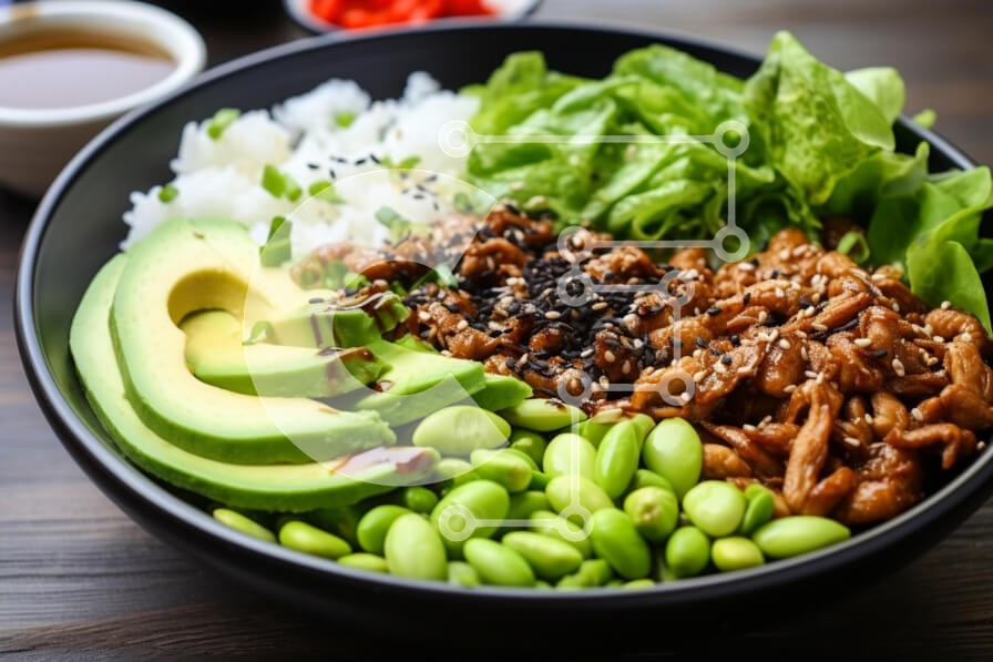 Υπάρχει δυνατότητα προσωποποίησης με δική σας φωτογραφία και προσαρμογής διαστάσεων κατόπιν παραγγελίας. Το συγεκεριμενο puzzle παρουσιαζει Αυτή η εικόνα παρουσιάζει ένα ζωντανό και πολύχρωμο μπολ γεμάτο με διάφορα συστατικά. Το μπολ περιέχει κομμάτια αβοκάντο, φυλλώδη λαχανικά, μαγειρεμένο ψιλοκομμένο κρέας περιχυμένο με σάλτσα, φασόλια edamame και λευκό ρύζι. Η παρουσίαση είναι ελκυστική, με τις διαφορετικές υφέ