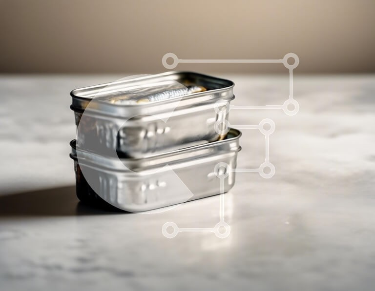Υπάρχει δυνατότητα προσωποποίησης με δική σας φωτογραφία και προσαρμογής διαστάσεων κατόπιν παραγγελίας. Το συγεκεριμενο puzzle παρουσιαζει Η εικόνα παρουσιάζει δύο στοιβαγμένα μεταλλικά κουτιά που περιέχουν διατηρημένα ψάρια, πιθανώς σαρδέλες, που στηρίζονται σε έναν μαρμάρινο πάγκο. Η γυαλιστερή επιφάνεια των κονσερβών αντανακλά το φως, αναδεικνύοντας τη μεταλλική υφή τους. Το φόντο είναι απαλά θολό, δημιουργώντ