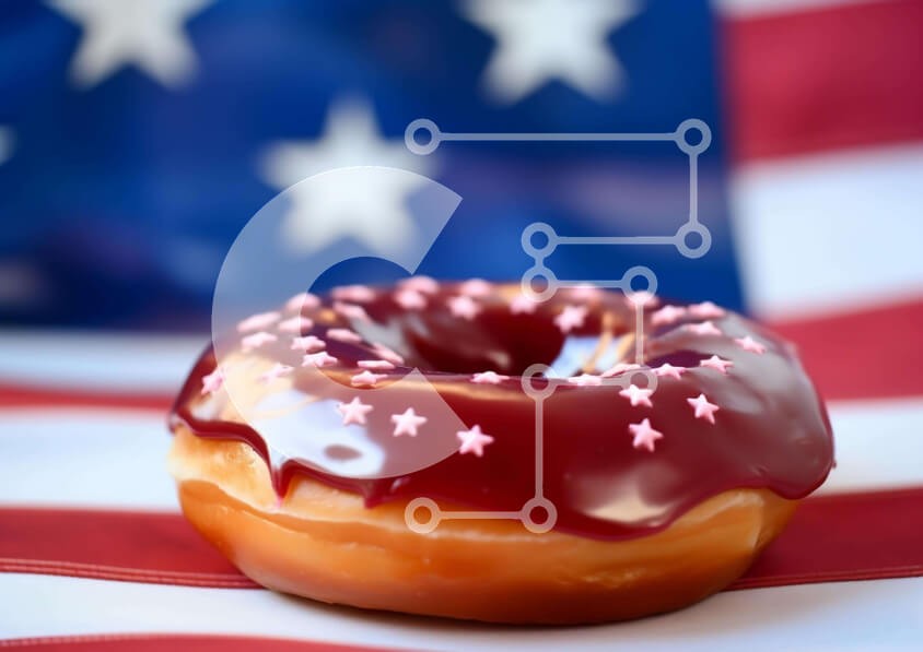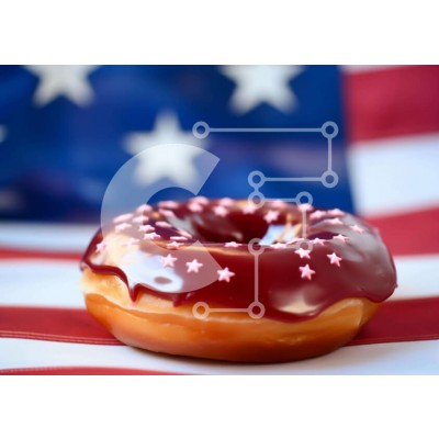 Υπάρχει δυνατότητα προσωποποίησης με δική σας φωτογραφία και προσαρμογής διαστάσεων κατόπιν παραγγελίας. Το συγεκεριμενο puzzle παρουσιαζει Η εικόνα παρουσιάζει ένα ντόνατ που κάθεται πάνω σε φόντο αμερικανικής σημαίας. Το ντόνατ είναι διακοσμημένο με κόκκινο, λευκό και μπλε πάγωμα, προσθέτοντας στη συνολική ελκυστικότητα της εικόνας. Μπορεί να βρεθεί σε διάφορα σημεία γύρω από το τραπέζι, όπως κοντά στο κέντρο ή