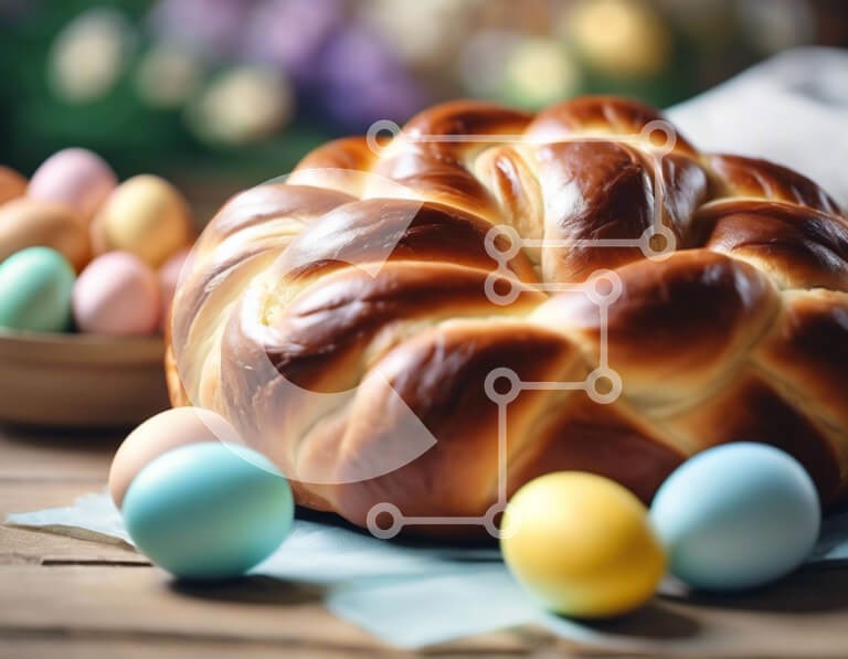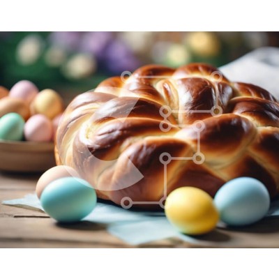 Υπάρχει δυνατότητα προσωποποίησης με δική σας φωτογραφία και προσαρμογής διαστάσεων κατόπιν παραγγελίας. Το συγεκεριμενο puzzle παρουσιαζει Αυτή η εικόνα απεικονίζει μια γιορτή του Πάσχα με παραδοσιακό φαγητό και γλυκές λιχουδιές. Ένα πλεκτό ψωμί, πολύχρωμα αυγά και διάφορα μπολ είναι τοποθετημένα σε ένα τραπέζι, δημιουργώντας μια γιορτινή ατμόσφαιρα. Η κεντρική τοποθέτηση ενός αυγού υποδηλώνει εστίαση σε πασχαλιν